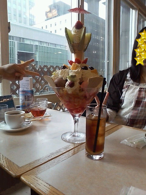 金曜日は大学休みだったので、女の子3人でジャンボパフェ挑戦してきました(^q^)